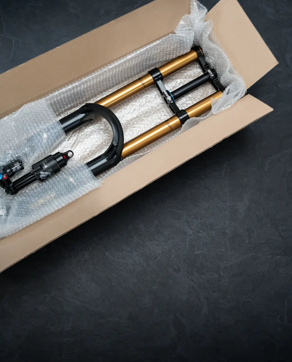 Your suspension elements should be cleaned at least roughly before shipping to ensure a smooth service. Accessories such as thru axles, triple clamps and shock bushings can be sent along so that we can check them for wear or defects. Fork quick bleeders, fork protectors, mud flaps, speed sensors, etc. should be removed before service.